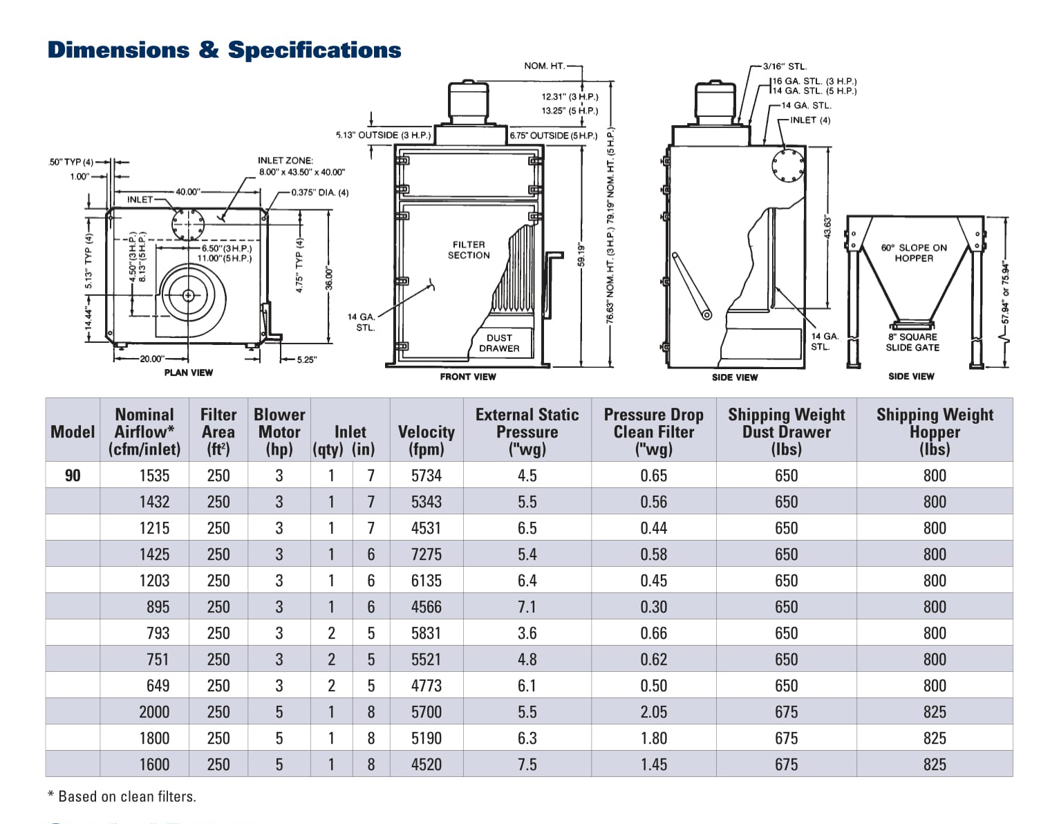- Efficient, compact design handles a wide range of dust applications from 1200 to 2000 cfm.