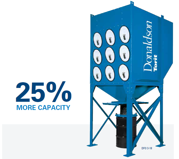 The DFO advantage is found in the collector’s proprietary design and components. The combination of a new cabinet design that greatly lowers cabinet velocities, proprietary Extra-Life™ cleaning technology, and proven Ultra-Web nanofiber filters allows more airflow through the collector without increasing the size of the footprint or damaging the filters.