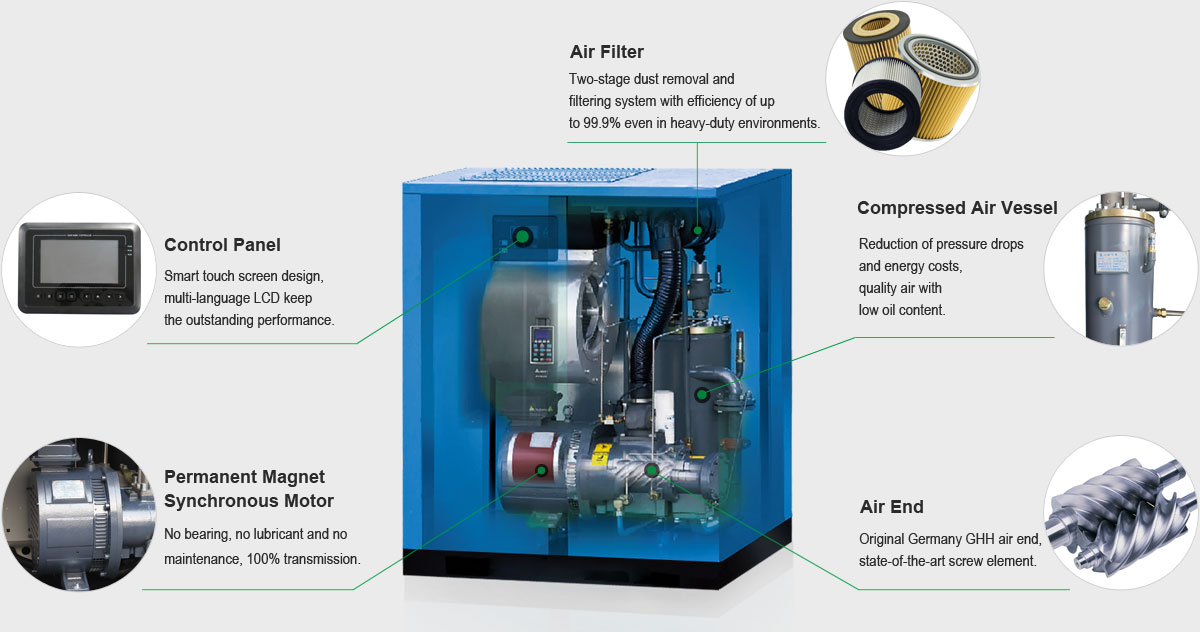 PMSM VSD Air Compressor Advantages: